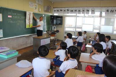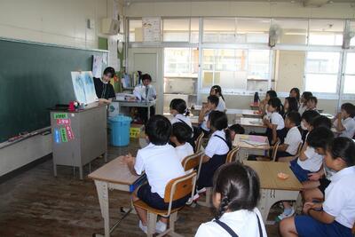 先週、栄養教諭になるための教育実習を行いました。教育実習生のO先生が4年1組で苦手な食べ物についての評価授業を行いました。O先生のステキな笑顔にさそわれて、4年生が生き生きと学習しました。苦手な食べ物について深く考える機会になりました。教育実習生のO先生と4年生の皆さん、ありがとうございました。