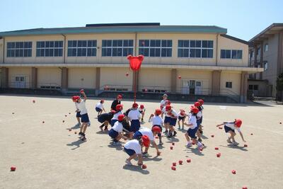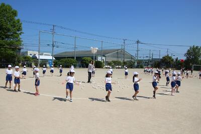 五月晴れという言葉がぴったりの天候に恵まれ、1・2年生が玉入れの練習をしました。玉入れをする前にダンスをしてから玉入れをします。音楽に合わせてダンスをする姿がとてもステキです。練習を2回行い、赤白1勝1敗でした。ダンスを得点に加えてもいいなあと感じました。1・2年生のパワーがみんなを笑顔にしてくれます。