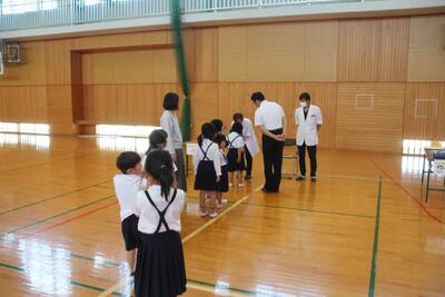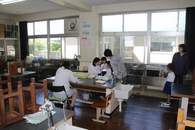 歯科検診を行いました。理科室と家庭科室に分かれて、歯科医の二人の先生にみていただきました。この結果を保護者の皆様にお伝えし、児童の健やかな成長につなげていきます。歯科検診の関係者の皆様、ありがとうございました。