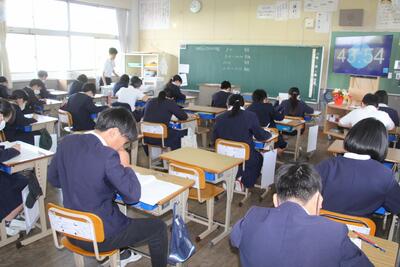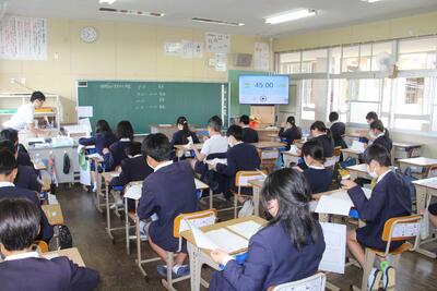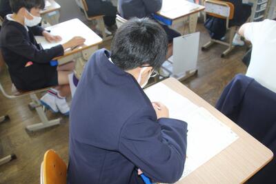 6年生を対象にした全国学力・学習状況調査を行いました。2時間目が国語、3時間目が算数でした。これまで学習してきたことを生かして、問題を読み取り、その条件に合わせた解答を記入していきます。問題文を読み取ろうとする真剣なまなざし、問いに合わせた解答を考える姿、ページをめくり解答用紙に書き込む鉛筆の音など、6年生が真剣に調査に向き合う態度がとてもステキでした。この結果を今後の教育活動に生かしていきます。6年生の皆さん、お疲れ様でした。