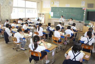 毎月19日は食育の日(ふるさとくまさんデー)で、地元の食材を使った給食メニューが出されます。この日は、サラダたまねぎを使った「サラたまのおかかあえ」と、たけのこを使った「わかたけ汁」サラダたまねぎやたけのこの食感や味を楽しんでおいしくいただきました。八代の恵みに感謝して食べる郡築っ子のいる教室中に春のたまねぎの香りが広がっていました。学校給食に関わる全ての皆様、いつもありがとうございます。