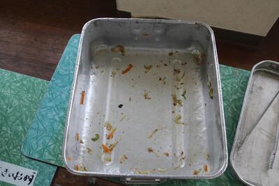 空っぽになったサラたまのおかかあえの食缶 |