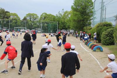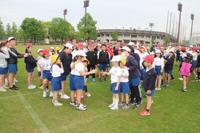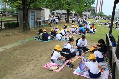 1年生のためのふれあい集会と歓迎遠足を行いました。ふれあい集会では、縦割り班に分かれて自己紹介をして、班ごとに遊びを決めて6年生リーダーを中心に、だるまさんが転んだや鬼ごっこ・王様ゲームなどをして、仲良く活動しました。その後、歓迎遠足で県南運動公園に行きました。多目的広場で、全員でじゃんけん列車や逃走中をしました。途中、本物のハンターが現れると泣き出す1年生がいました。全員での活動が終了し、子どもたちが楽しみにしていたランチタイムでした。家族の愛情が詰まったお弁当をおいしそうに食べて、ニコニコ笑顔でした。活動の企画や運営を行った6年生の皆さん、お弁当などの遠足の準備をしてくださった保護者の皆様、ありがとうございました。