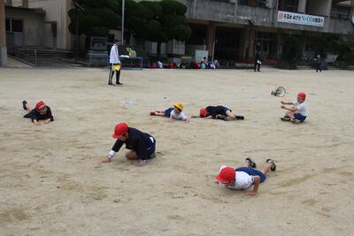 縦割り班でだるまさんが転んだ |