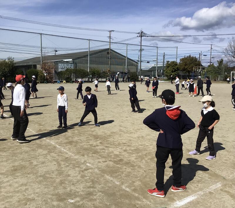 5年生がコツを伝えて、掛け声をかけて、タイミングを教えてくれました。ほとんどの子供たちが「片足で飛ぶ」ことができるようになり、出入りがスムーズになりました。