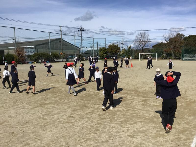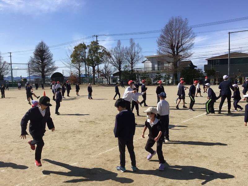 体育委員会の企画で、2年生と5年生とで陣取りをしました。