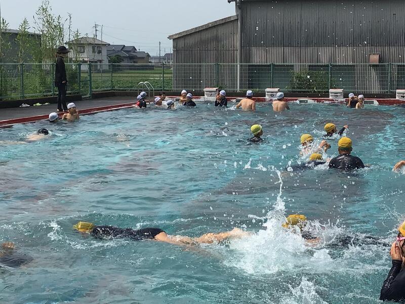 20日(火)の2時間目に、高学年のプール開きでした。朝から気温が上がり、絶好のプール開きでした。