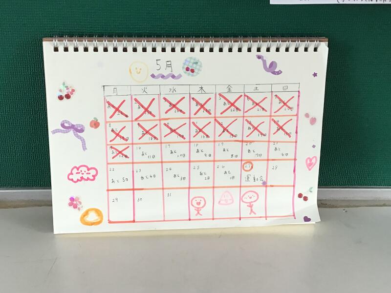 カウントダウン係は、運動会までの日数をカレンダーにして、掲示しています。今後も、様々な行事までの日数をカウントダウンにして伝えていくとのことです。