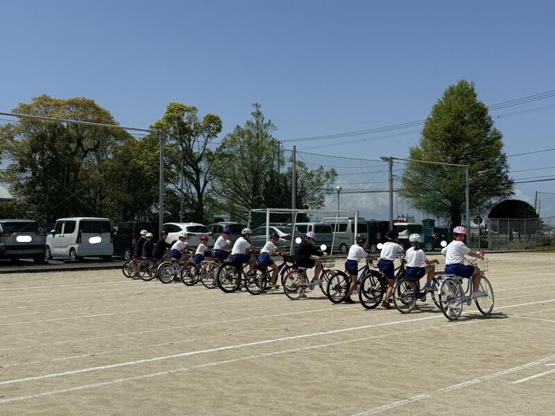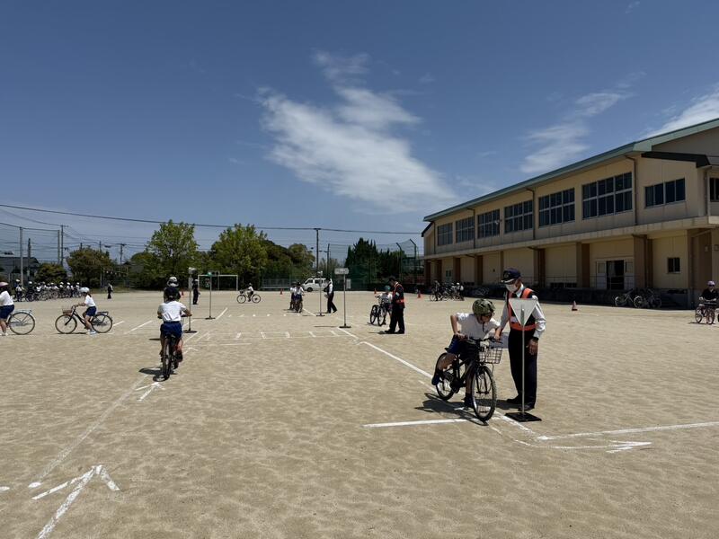 まず、交通安全協会の方から自転車の乗り方やヘルメットの正しいかぶり方についてお話していただきました。その後、子供たちは、自転車の正しい乗り方や交通ルールについて、実際に自転車に乗って確認しました。後方確認の仕方や交差点での左右確認の仕方など多くのことを学んでいました。
