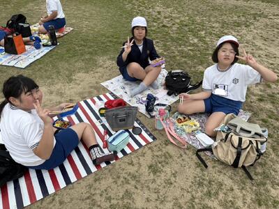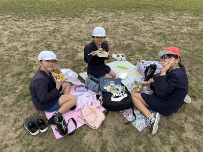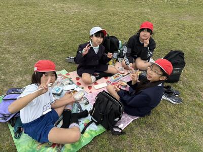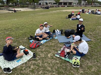 遠足では、過ごしやすい曇り空の中、出発しました。運動公園に着くと、すぐにお弁当を食べ、元気よく遊んでいました。お忙しい中にもかかわらず、お弁当を準備していただきありがとうございました。全員とても幸せそうに食べていました!(^^)