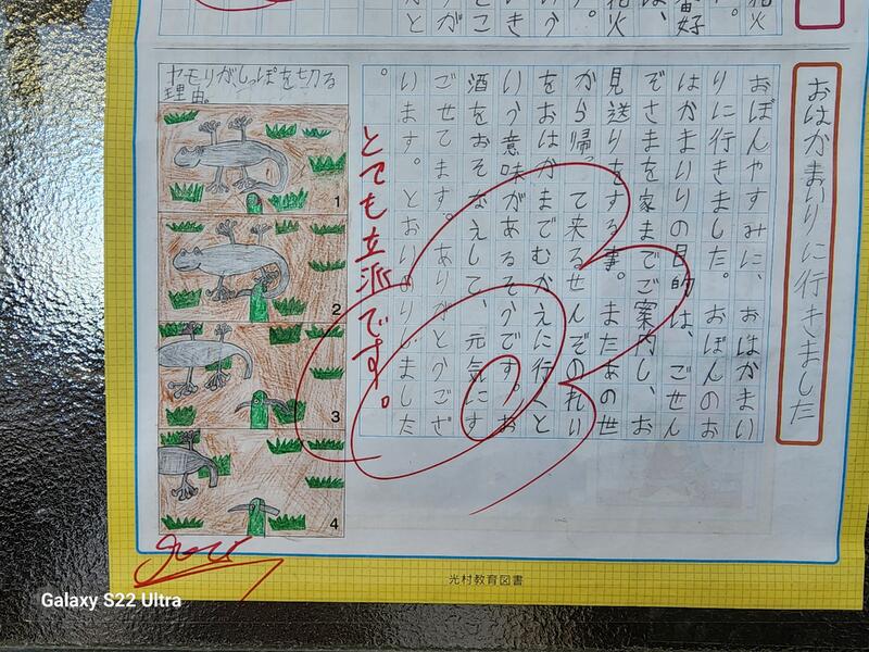 2学期が始まり、約1週間が過ぎました。夏休み明けの子供たちは、1学期の頃よりも逞しく大きく成長した姿を見せてくれました。夏休み新聞で、日本の文化について書いている児童がいたので、クラスに紹介をしました。保護者の皆様、2学期もたくさんの場面でご協力をいただくことがあると思いますがよろしくお願いします。