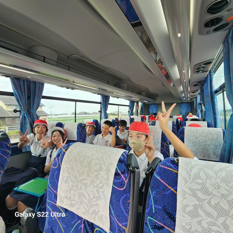 まずは、出発式とバスの中の写真です。朝から子どもたちのやる気が伝わった出発式になりました。