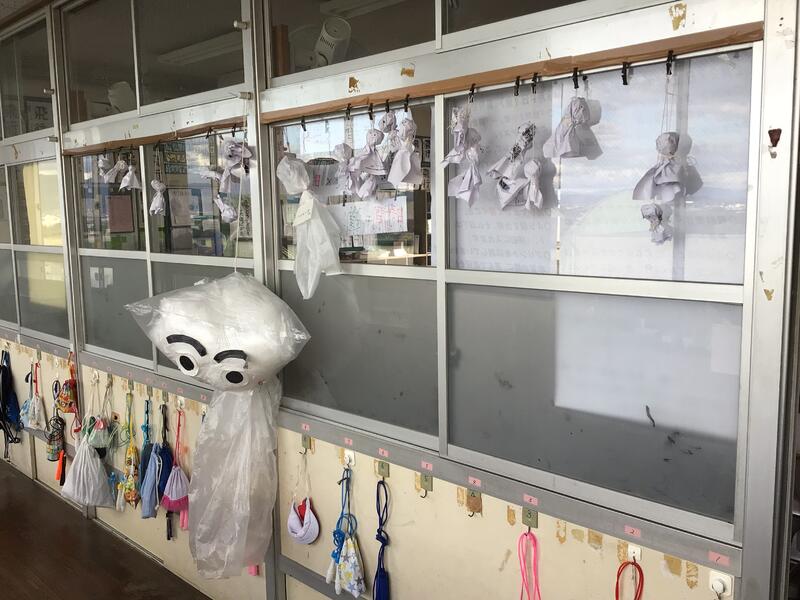 現在、5年教室前の廊下は、以下の写真のような光景です。遠足当日は雨の可能性が高く、廊下には、てるてる坊主が多く吊り下げられています。集団宿泊教室前以来の光景です。子ども達も天気がどうなのか気になって仕方がありません。