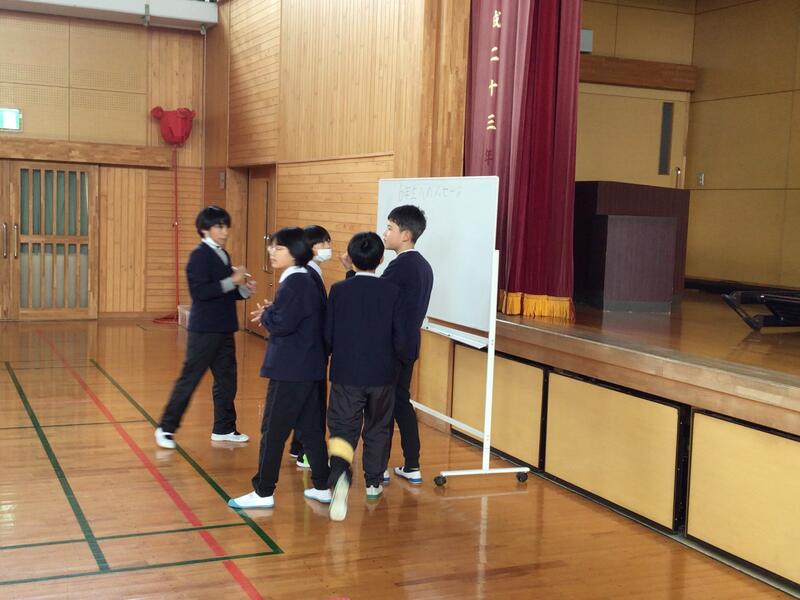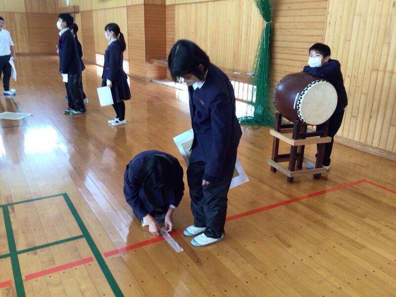 本日4時間目に、体育館で立ち位置・流れ確認等を行いました。