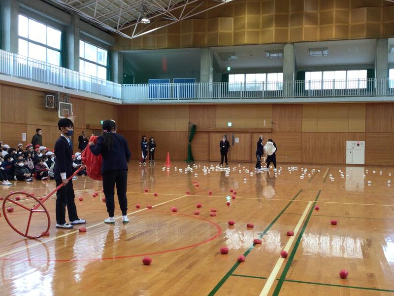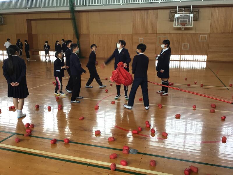 6年生を中心に、様々な組み合わせで玉入れを行いました。長い時間かかりましたが、盛り上がりました。