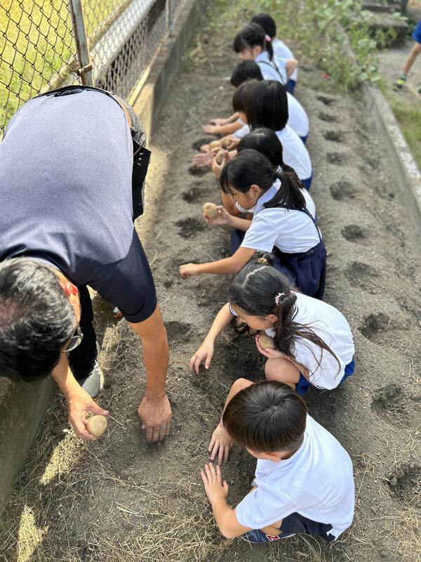 まず、植える前に種芋をじっくり観察する時間をとりました。芽が出ているのもあれば、芽は出ていないけれどボコボコになっている部分から芽が出てくる、ということを学びました。