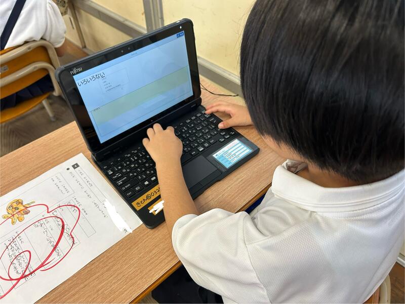 また、ICT支援員の方とともに、Skymenuの発表ノート機能で、自分の考えを書く練習をしました。