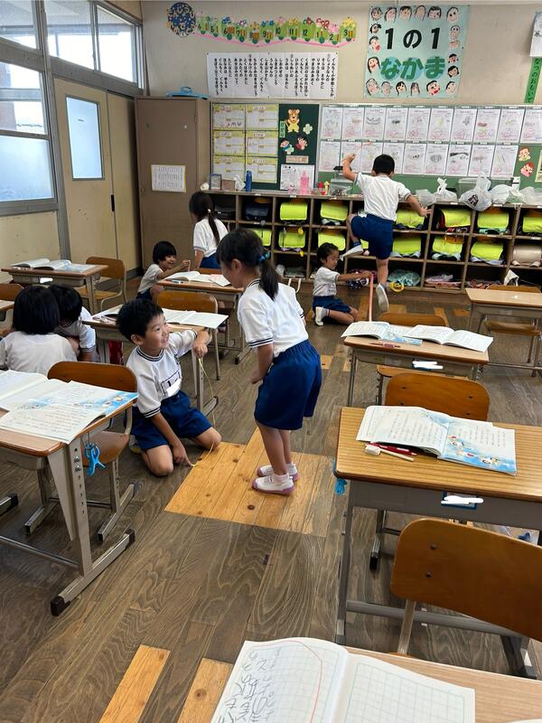一年生は、自分たちで室内でも楽しく遊べる方法を見つけ始めました。