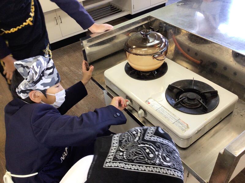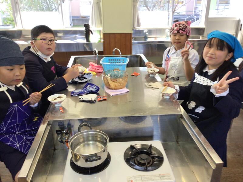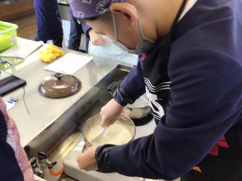 14日(火)の3・4時間目に、炊飯の実習を行いました。炊飯器を使わず、火力を調節しながらご飯を作り上げました。普段は炊飯器を使って炊いていますが、実際に鍋を使うことで、各班でタブレットPC(タイマー)を使って、時間を計測しながら、火力を調節していました。鍋から泡が吹き上がったときは、とても驚いていましたが、どのように炊き上がるのか、子どもたちも興味をもってじっくり観察していました。炊き上がったときは、とても喜んでいました。そして、とても美味しかったようです。