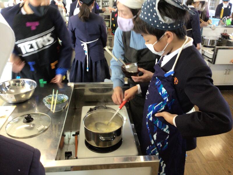 給食もそのまま家庭科室で食べました。来週は、味噌汁実習を予定しています。婦人会の方々もお越しいただき、お手伝いいただく予定です。