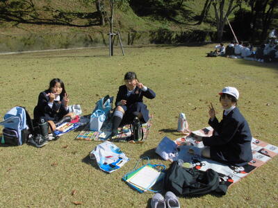 朝は冷え込みましたが午後からは気温も上がり、お弁当も外で気持ちよく食べることができました。