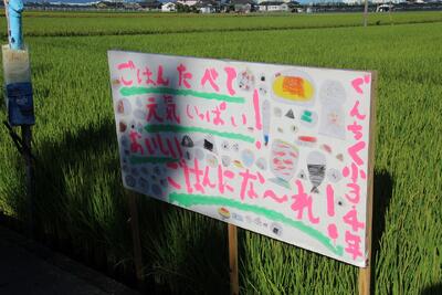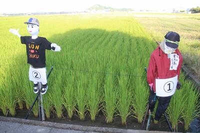 本校の正門前に3・4年生が田植えを行った水田があります。そこに、13体のステキなかかしが並んでいます。これは、郡築まちづくり協議会が開催したかかしコンテストの作品です。各町内でテーマを考えて製作されたもので、見る人を笑顔にしてくれます。かかしコンテストに関わった全ての皆様、ありがとうございました。