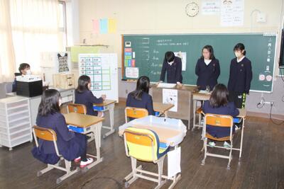 1月の委員会活動を行いました。3学期も児童が主体となってさらに豊かな学校にしようと頑張っています。給食委員会では、学校給食記念週間の取組の一つである委員会の発表を練習しました。また、ある委員会ではみんなの意識付けを高めるために新しいキャラクターについて、熱い話合いを行いました。学校のために頑張る頼もしい5・6年生です。