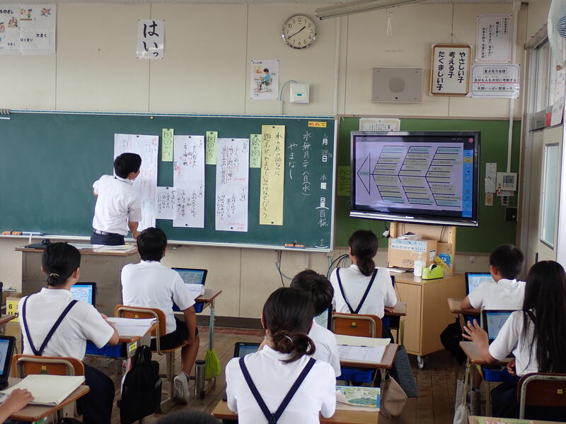 タブレット端末を自分の作戦基地として、あるいは自分の発表の場としてスムーズに学習に活用する子供の姿がありました。