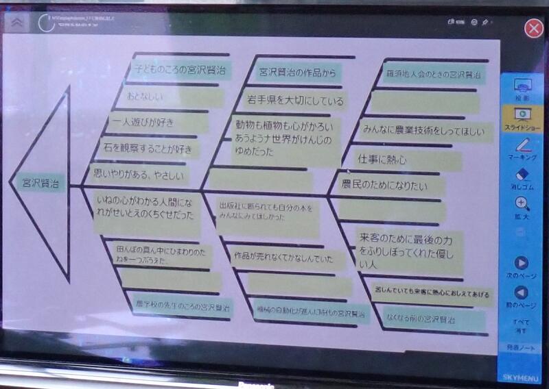 宮沢賢治の生涯についての資料については、各自のタブレット端末にフィッシュボーンという図に整理していました。