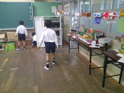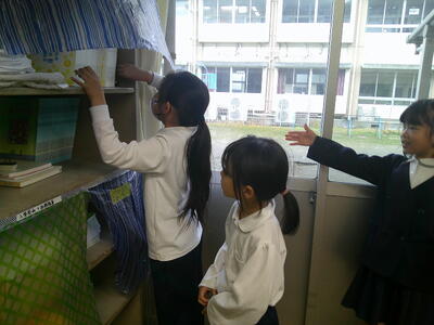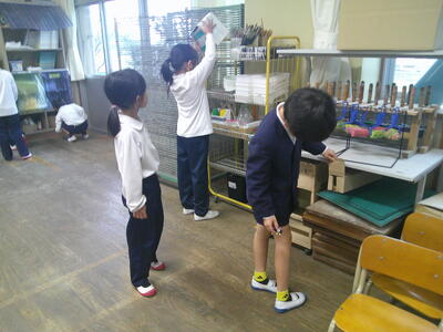 1人2こずつ作って教室のすきまに置き、タブレットで写真を撮りました。その後、2チームに分かれて、一方のチームが図工室に自分の作った「すきまちゃん」を隠し、もう一方のチームが探すというゲームをしました。