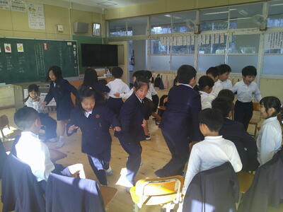 やりたいことがたくさんあったので、月曜日と火曜日の昼休みを使ってみんなで遊びました。月曜日の昼休みには「フルーツバスケット」、火曜日の学活の時間には「ボールあておにごっこ」と「ドッジボール」、昼休みに「99日間生きのこれ」という遊びをしました。2日間とも暖かくて、子供たちはおもいっきり走り回って楽しんでいました。