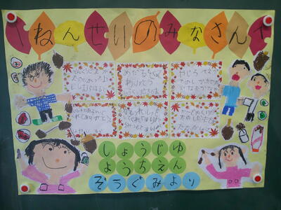 火曜日(23日)には松寿幼稚園のみなさんが、11月の交流会のお礼の手紙を持って来てくれました。また、5時間目の生活の時間には、2学期にした活動や行事を振り返りました。