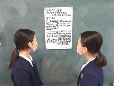 毎日の献立の紹介に加えて、その日の食材の中から一つピックアップして、その食材の栄養を調べて紹介するという活動がプラスされました。ある日の活動では、メニューの一つであった「ひじき」の栄養について調べて、鉄分やカルシウムが豊富に含まれていることを学級全体に紹介していました。