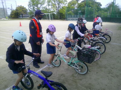 毎年行っている交通教室ですが、3年生からは自転車の乗り方についても学習します。