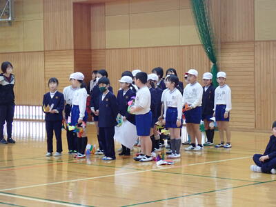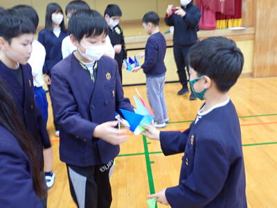 1時間目は、ふれあい集会として、6年生へのはなむけの言葉を発表しました。3年生は、6年生全員に王冠を作り、王冠にメッセージを添えてプレゼントしました。