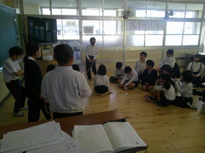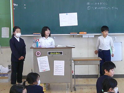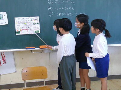 最初に学級会を開き、①おにごっこ、②バレーボール、③ボンバーゲーム、④ハンカチおとし、⑤「これは何でしょう」ゲームの5つをすることに決めました。