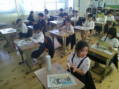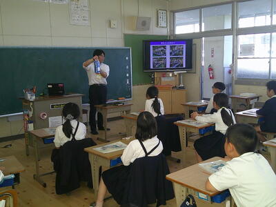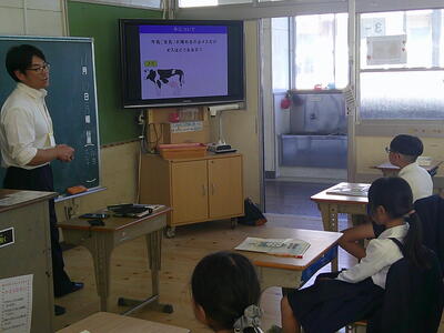 11月10日(月)、球磨酪農農業協同組合の担当者の方にわざわざ人吉からお越しいただき、「牛と牛乳とヨーグルト」をテーマにした出前授業をしていただきました。