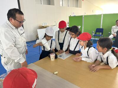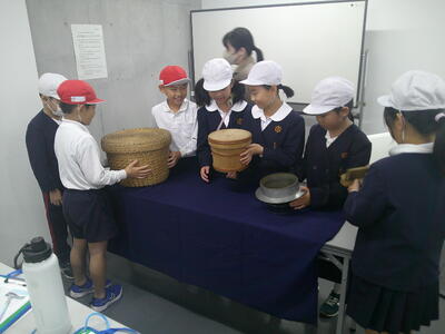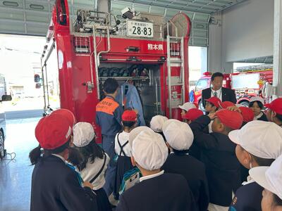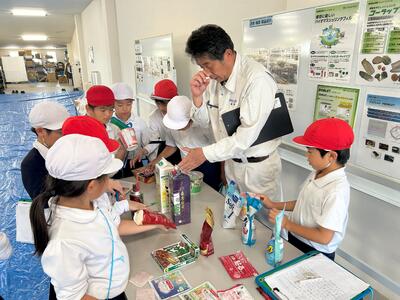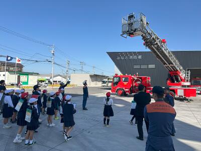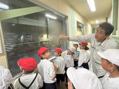 お祭りでんでん館、みなと消防署、興人フィルムケミカルズ様を見学させていただきました。子供たちは、説明をしていただいた方の話を真剣に聞き、「もう書くところがない」と言う子供が多くいるなど、見学のしおりいっぱいにメモを取っていて感心しました。