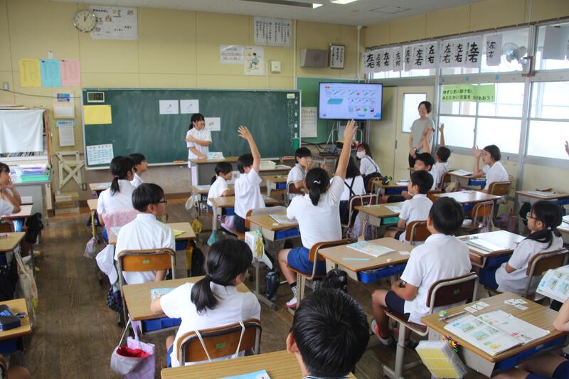 外国語活動では、文房具の名前を覚えて、持っているかどうかを尋ねる言い方を練習しています。