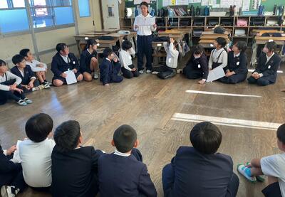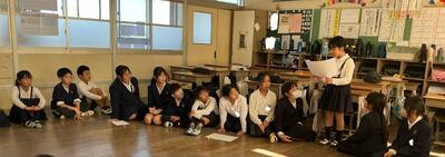互いが顔を合わせて伝え合えるように、机を後ろに引いて、円形になって進めていきました。それぞれの作文の発表後には、お返しの言葉を伝えるようにしました。お返しの視点を示していたので、それを参考にしながら、多くの子が考えや感想を伝えることができました。伝えた子たちも緊張したと思いましたが、「伝えて良かった」という感想が聞かれました。