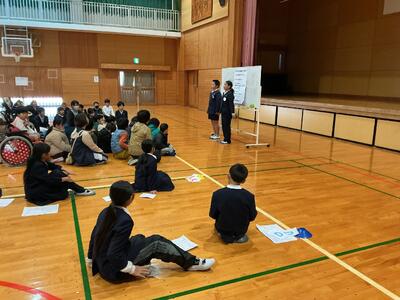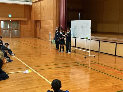 約3週間前から何をするか学級会で話し合い、役割分担をして、計画・準備を進めてきました。当日は、非常に寒い中でしたが、ダンス「鳥になろうよ」・自己紹介・ドッジボールを行い、みんなで楽しむ姿が見られました。