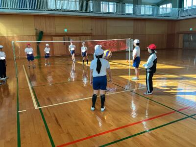 体育では、ルールを簡易化したソフトバレーボールを行っています。