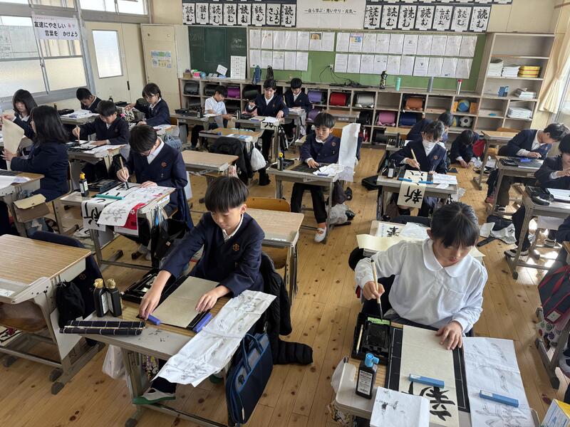 昨日、習字「新しい風」の清書を行いました。前半は練習を行い、後半に清書をしました。