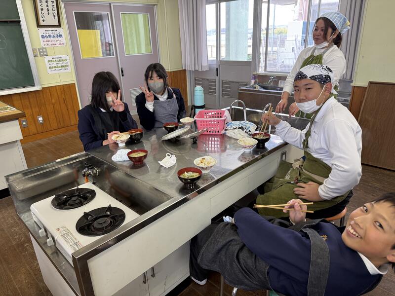 下の写真は、先日家庭科の調理実習で「ご飯とみそ汁」をつくり、食べたときの写真です!