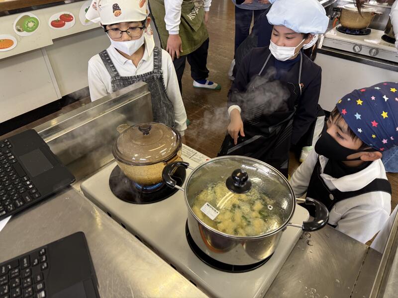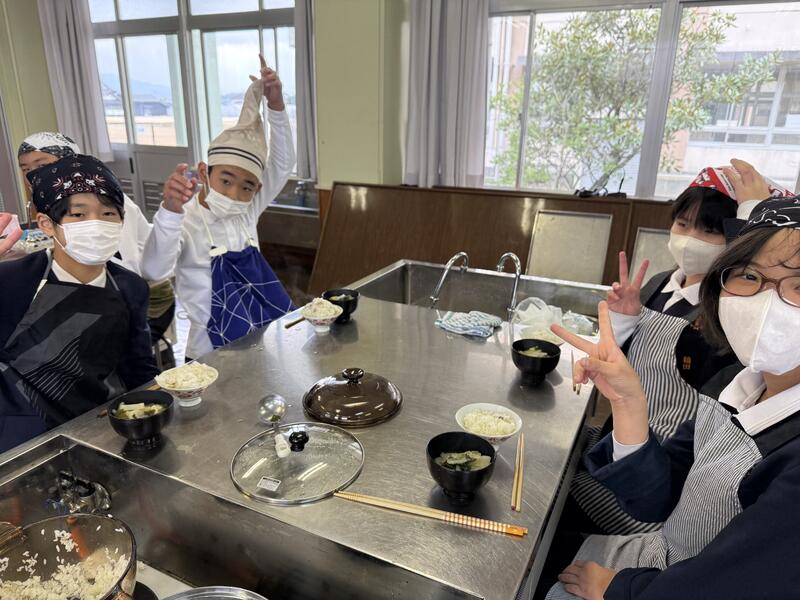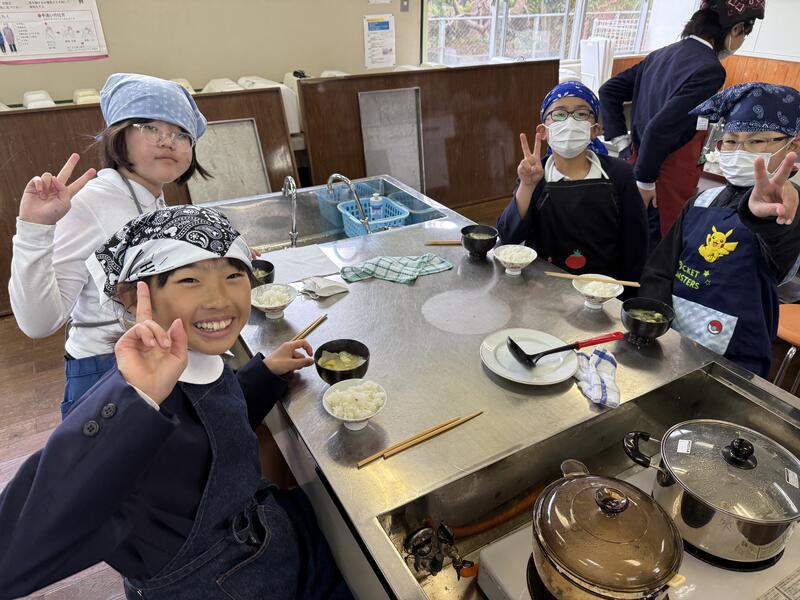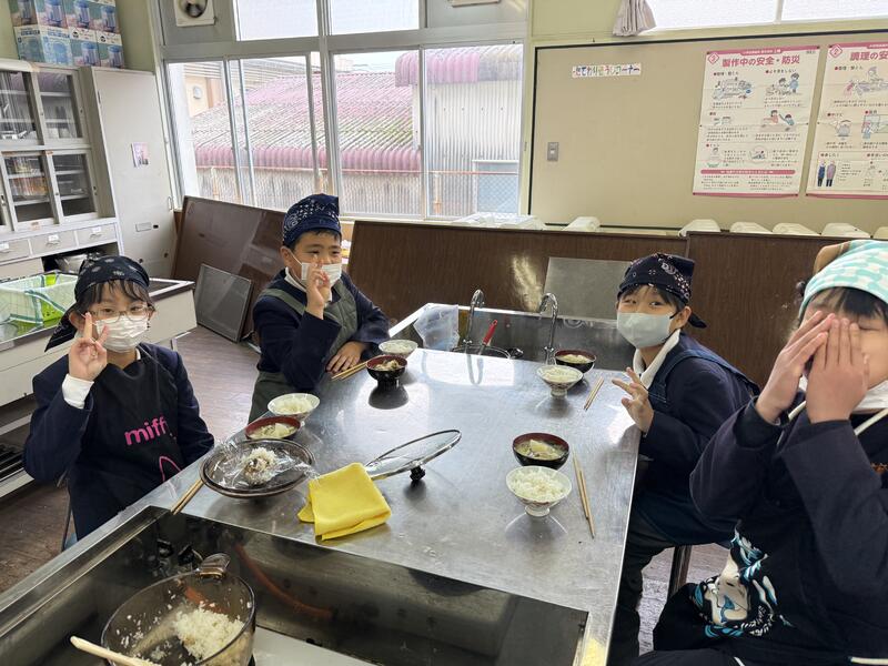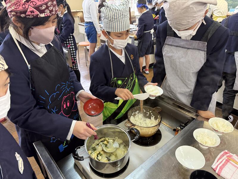 班の仲間と協力しながら調理し、できたご飯とみそ汁を美味しくいただきました。子供たちは、「いつものご飯よりさらにおいしいね」や「みそ汁の煮干しだしがきいてるね~」などと言いながら笑顔で食べていました!