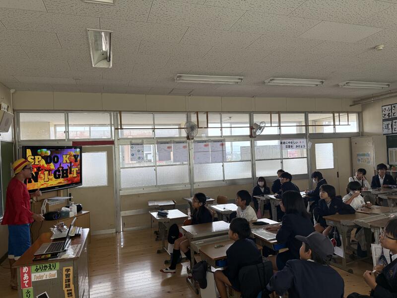 外国語の学習の一環で、ALTの先生から「Halloweenクイズ」が出題されました。