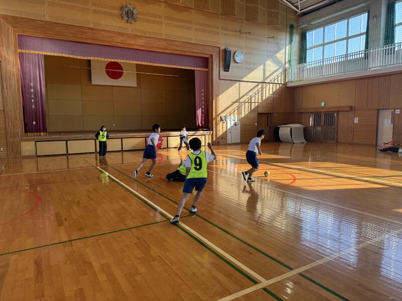 体育では、サッカーをしています。今日は、これまでの練習の成果をいかした、ゲームを行っていきました。