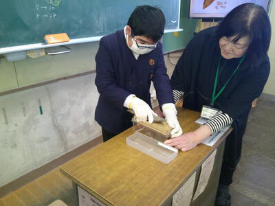 枯節を削ったり、だしを味見しながら風味や香りを確かめたりし、体験を通して学びを深めていました。また、本日の給食には、授業で味わっただしが使われており、毎日いただく給食への関心も高まっていました。
