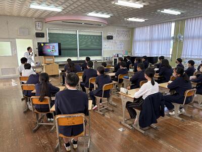 学校薬剤師の先生に来ていただき、薬物やタバコ、お酒が心身に及ぼす影響などについて教えていただきました。