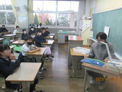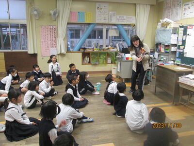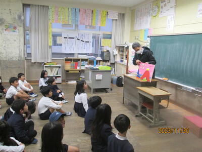 30日の朝の時間に、職員による読み聞かせを行いました。これは、担任以外の職員が各学級で読み聞かせを行うという取組です。子供たちは、静かな雰囲気の中で、話に聞き入っていました。
